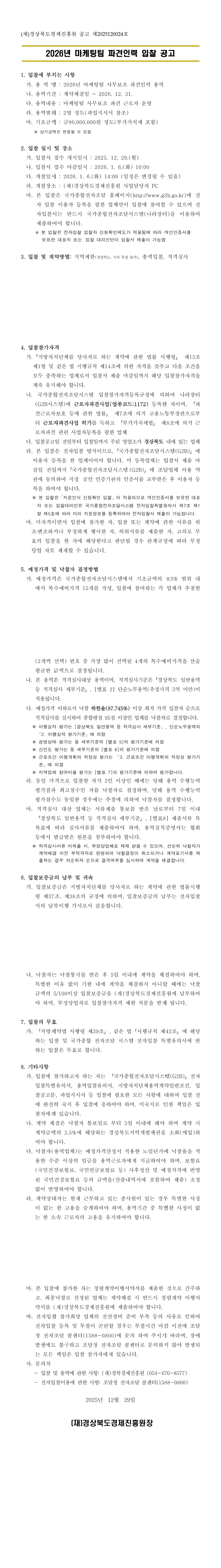 2026년 마케팅팀 파견인력 입찰 공고 |