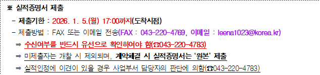 나. 개찰일시·장소 : 2026. 1. 6.(화) 11:00 / 충청북도 회계과 입찰집행관 PC