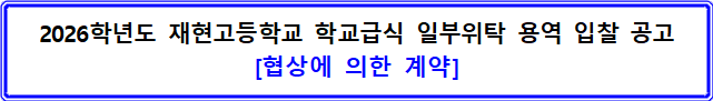 가. 용역명: 2026학년도 재현고등학교 학교급식 일부위탁 용역업체 선정 공고