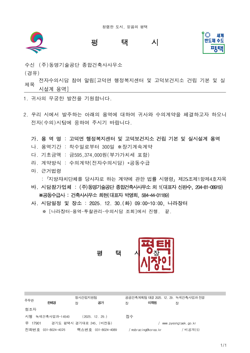 고덕면 행정복지센터 및 고덕보건지소 건립 기본 및 실시설계 용역 |