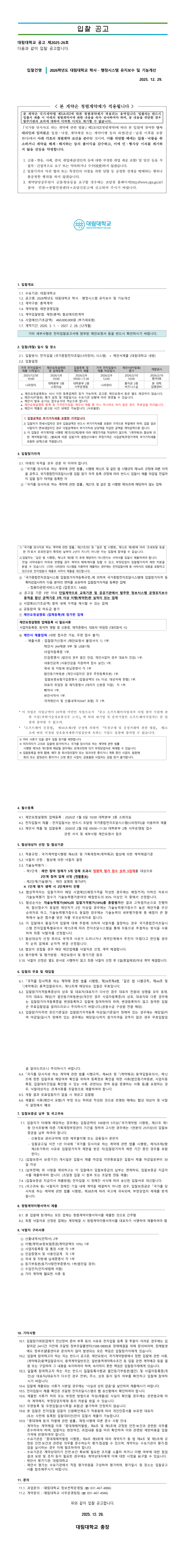 2026학년도 대림대학교 학사·행정시스템 유지보수 및 기능개선 |