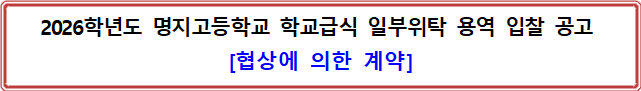 가. 용역명: 2026학년도 명지고등학교 학교급식(중・석식, 방학중급식) 일부위탁 용역업체 선정