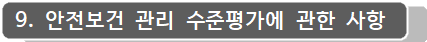 9.2 「중대재해 처벌 등에 관한 법률 시행령」 제4조, 제10조 및 「산업안전보건법」 제61조에 따라 낙찰자를 대상으로 안전보건수준 평가를 시행하며, 입찰 공고 시 첨부된 평가기준에 따라 적합으로 판정된 경우 최종 낙찰자로 결정합니다. *[첨부4] 참고
