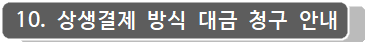 10.1 본 입찰은 「대·중소기업 상생협력 촉진에 관한 법률(상생협력법)」에 따른 결제 방식으로 선금 및 대금을 청구할 수 있습니다.