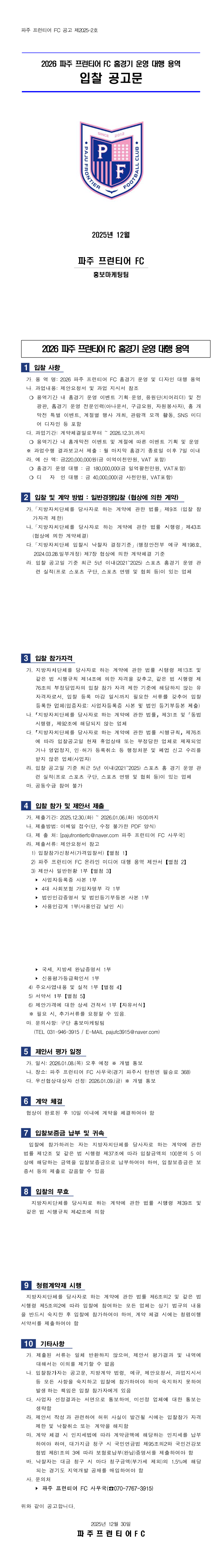 2026 파주 프런티어 FC 홈경기 운영 대행 용역(긴급) |
