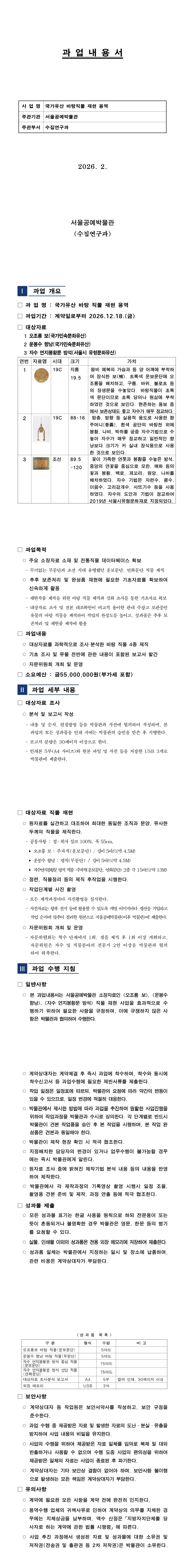서울공예박물관 국가유산 바탕직물 재현 용역 |