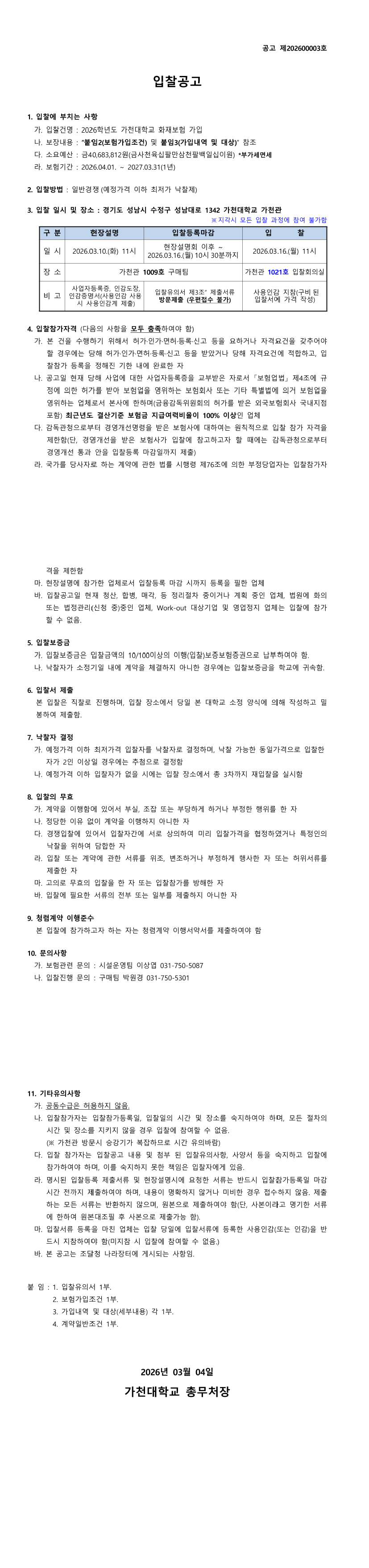 2026학년도 가천대학교 화재보험 가입 |