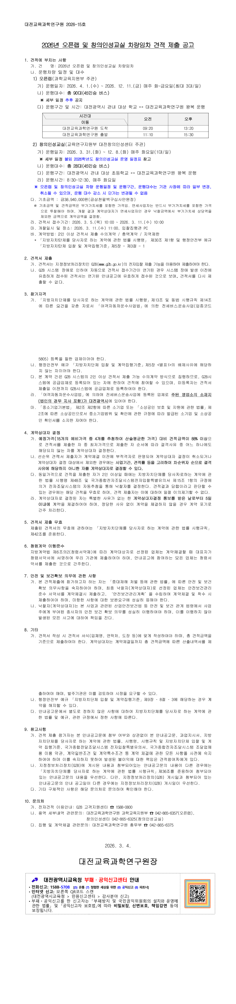 2026년 오픈랩 및 창의인성교실 차량임차 견적 제출 |