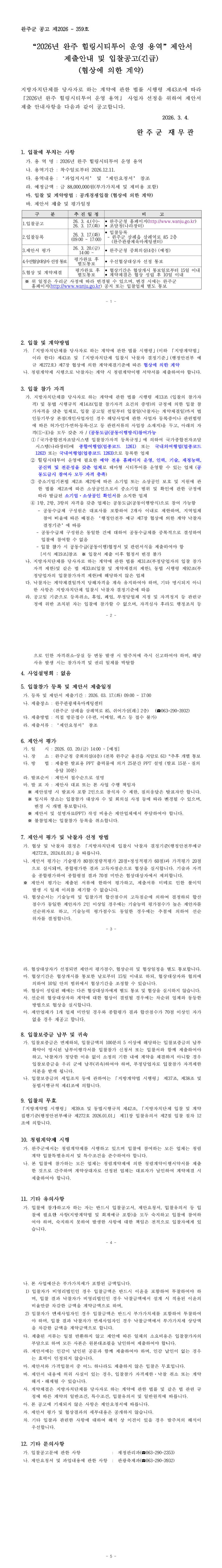 2026년 완주힐링시티투어 운영 용역(협상에 의한 계약) |