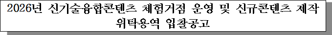 ㅇ 입찰건명 : 2026년 신기술융합콘텐츠 체험거점 운영 및 신규콘텐츠 제작 위탁용역