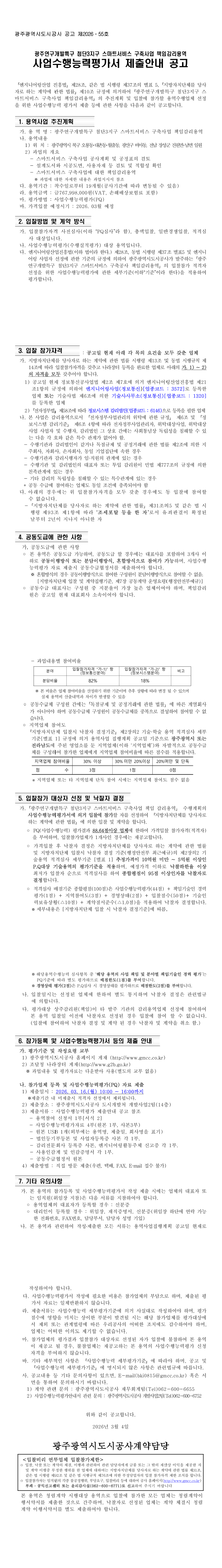 광주연구개발특구 첨단3지구 스마트서비스 구축사업 책임감리용역 사업수행능력평가서 제출안내 공고 |