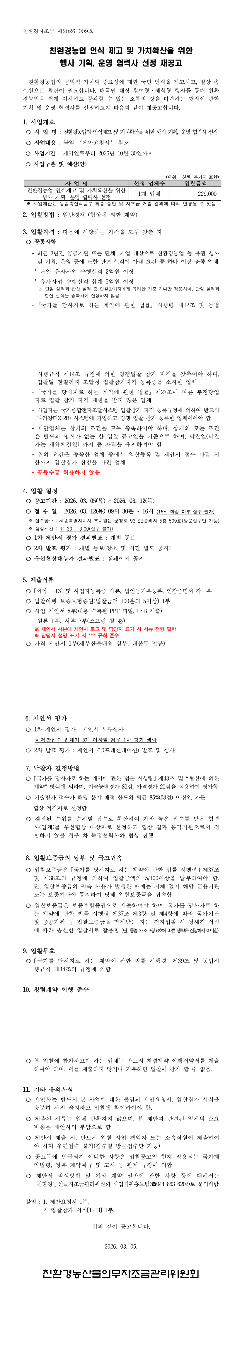 친환경농업 인식 제고 및 가치확산을 위한 행사 기획, 운영 협력사 선정 재공고 |