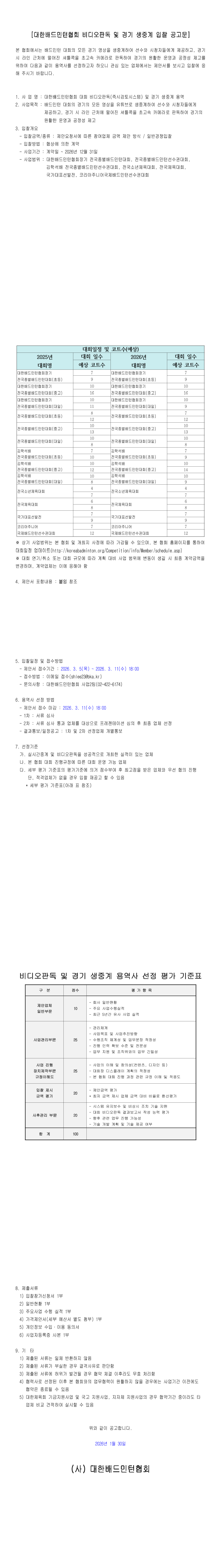 2026 비디오판독 및 실시간중계 입찰 공고 |