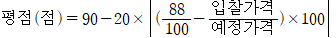 ○ 최저평점은 2점으로 하고, 입찰가격이 예정가격 이하로서 예정가격의 88.25%이상인 경우에는 85점으로 평가