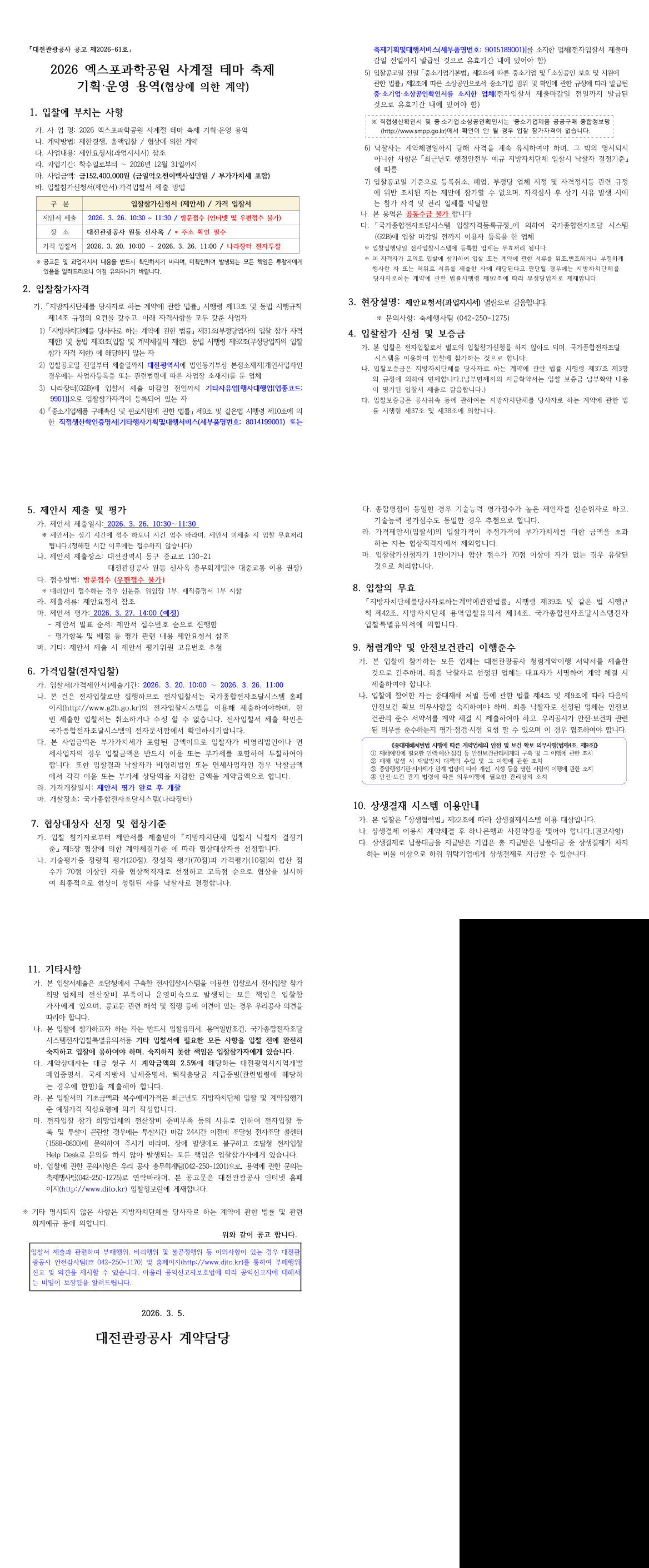 2026 엑스포과학공원 사계절 테마 축제 기획·운영 용역 |