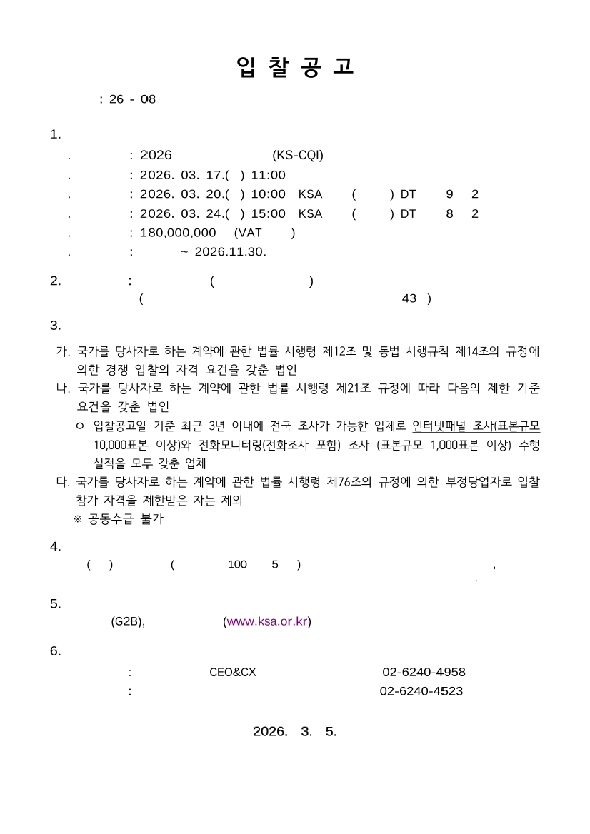 2026 콜센터품질지수(KS-CQI) 조사 용역 |