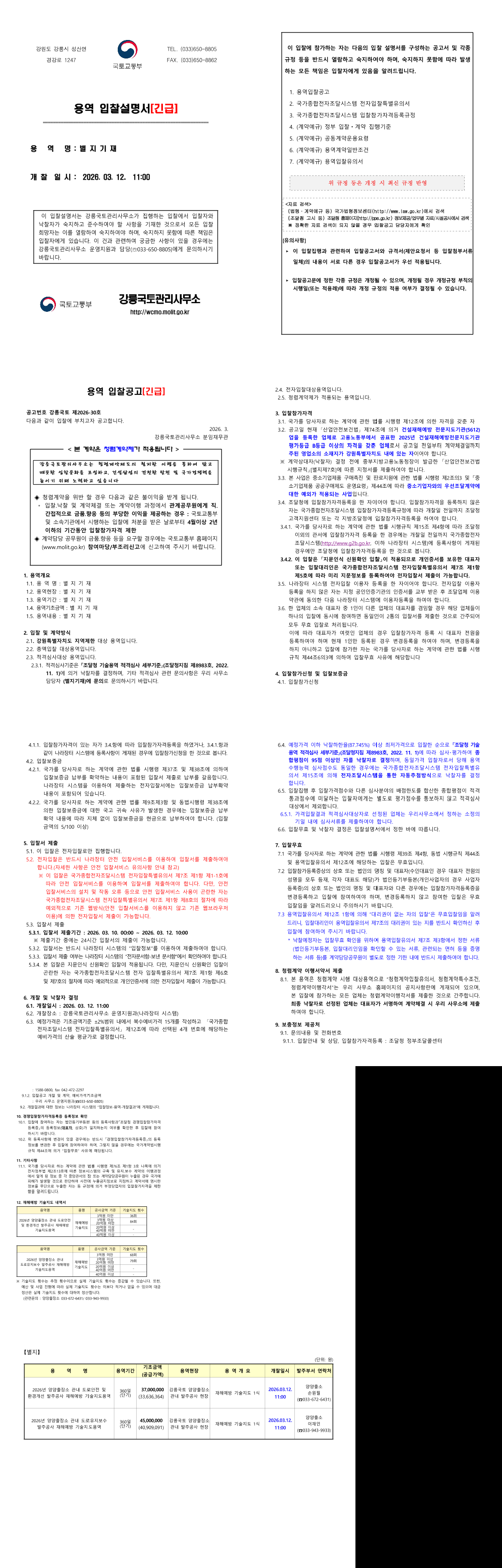 2026년 양양출장소 관내 도로유지보수 발주공사 재해예방 기술지도용역 |