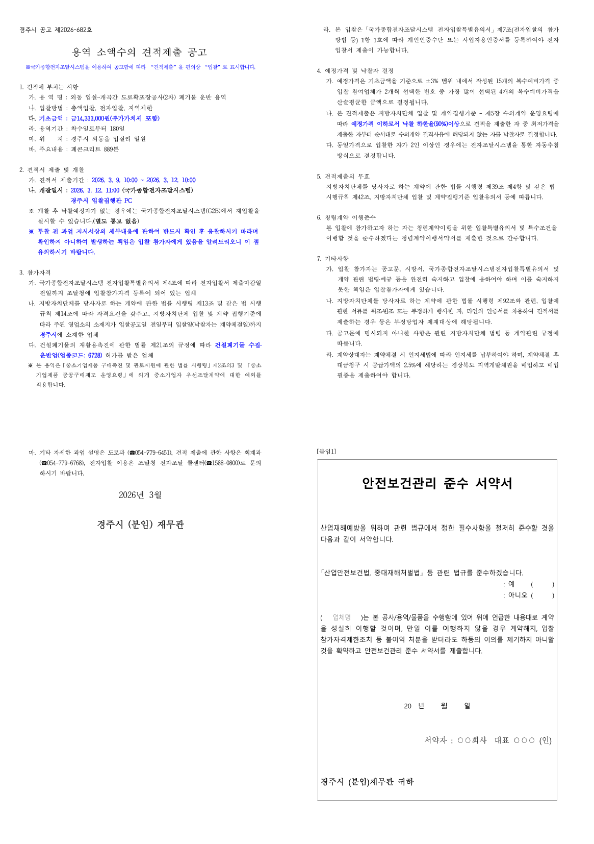 외동 입실~개곡간 도로확포장공사(2차) 폐기물 운반 용역 |
