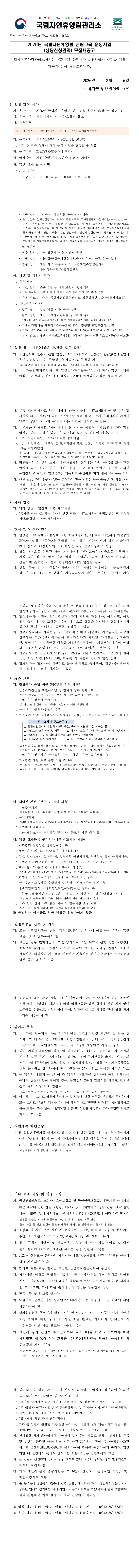 2026년 국립자연휴양림 산림교육 운영사업(상당산성권역) |