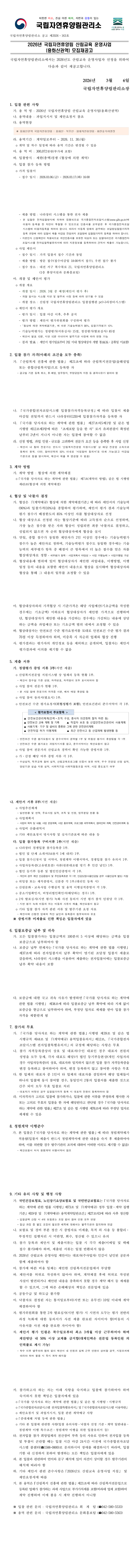 2026년 국립자연휴양림 산림교육 운영사업(용화산권역) |