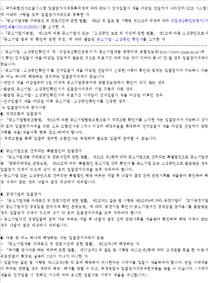물품분류 10자리로 입찰참가 제한함