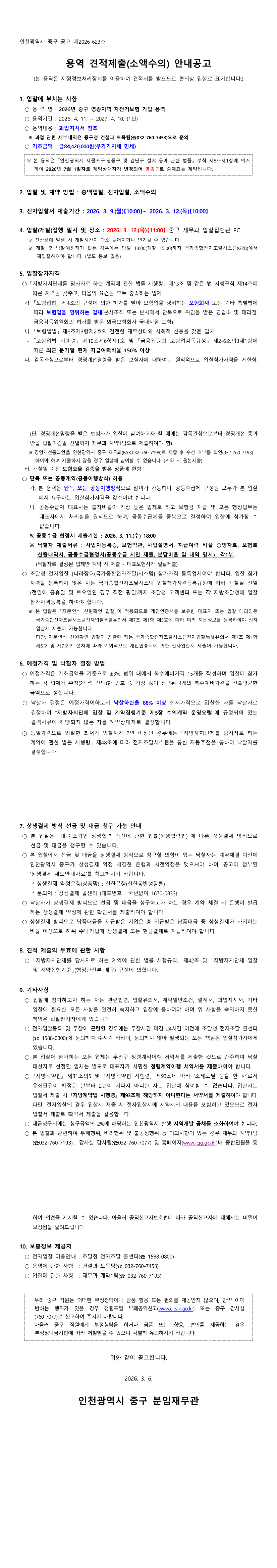 2026년 중구 영종지역 자전거보험 가입 용역 |