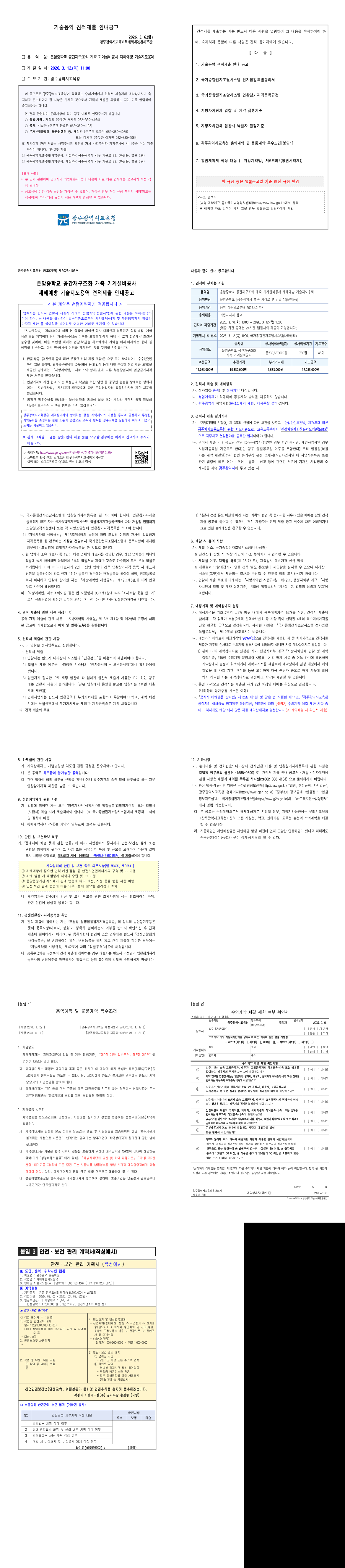 운암중학교 공간재구조화 개축 기계설비공사 재해예방 기술지도용역 견적제출 안내공고 |