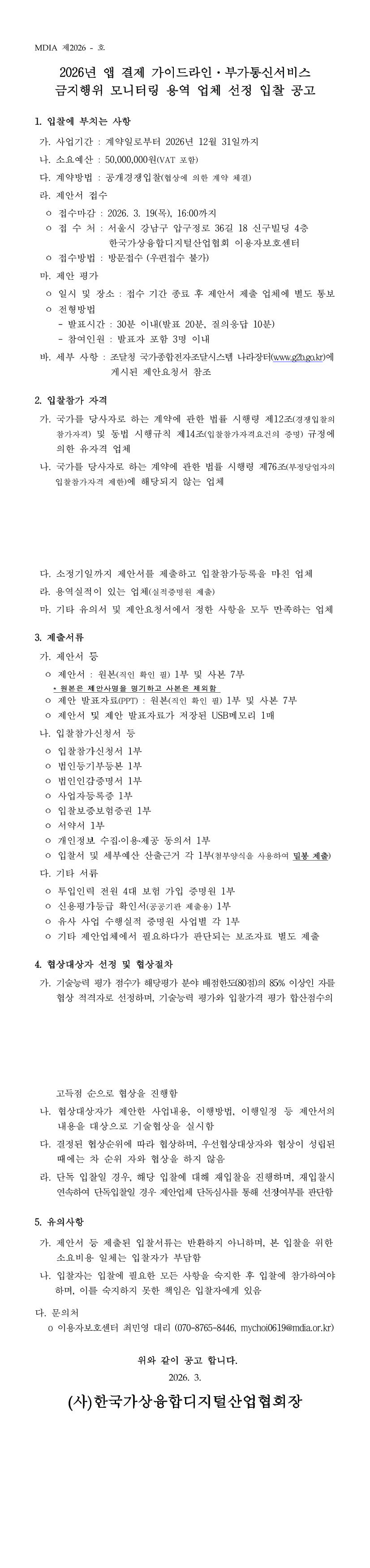26년 앱 결제 가이드라인·부가통신서비스 금지행위 모니터링 용역 |