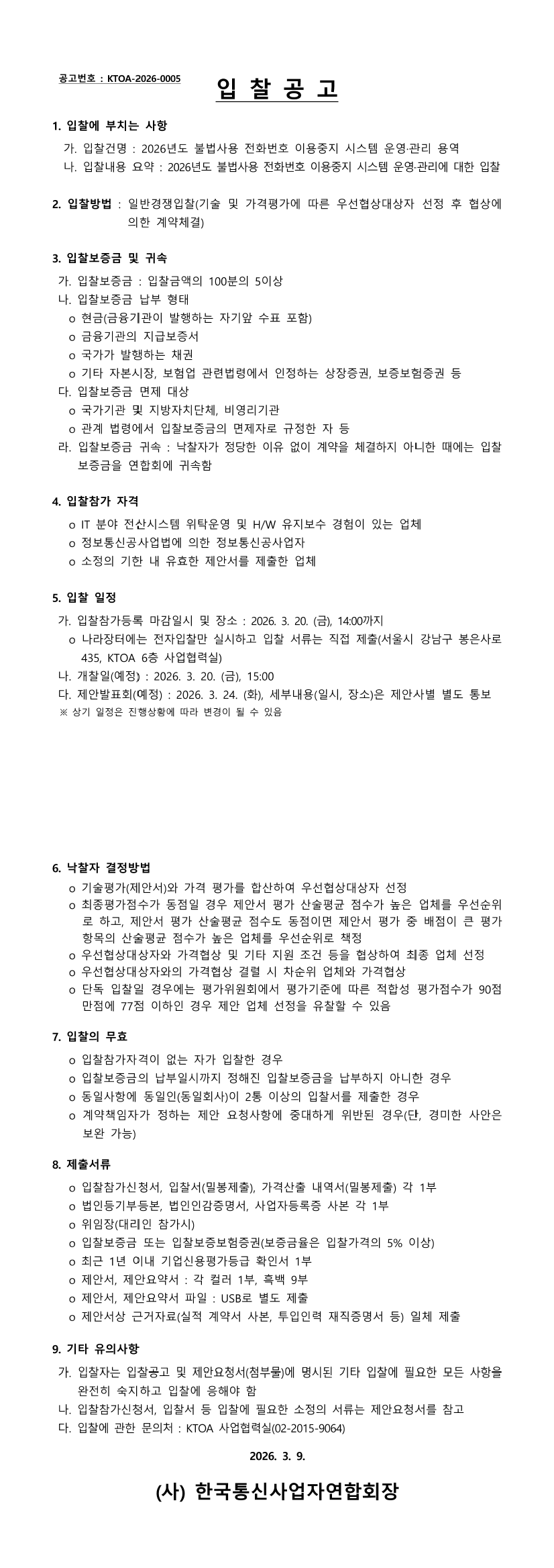 2026년도 불법사용 전화번호 이용중지시스템 운영관리 용역 |