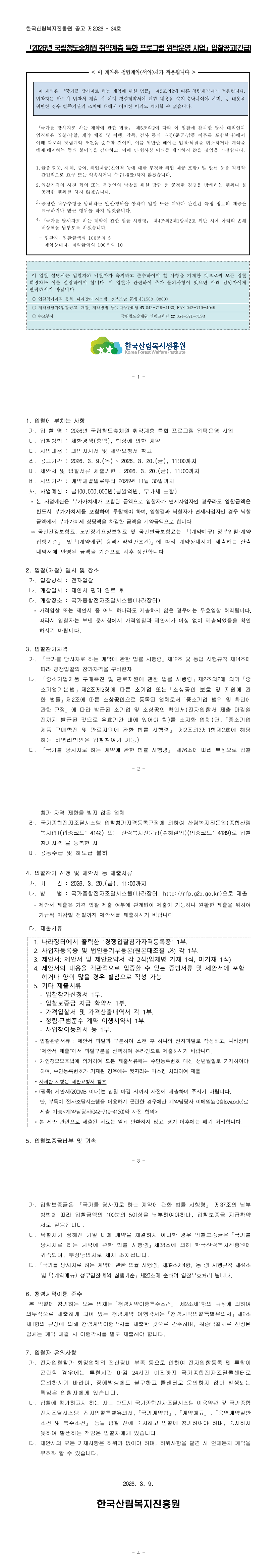 2026년 국립청도숲체원 취약계층 특화 프로그램 위탁운영 사업 |