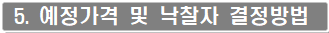 가. 예정가격은 기초금액에 ±3% 범위 내에서 복수예비가격 15개를 작성 입찰에 참여하는 각 업체가 2개씩 추첨한 결과 가장 많이 선택한 4개의 복수예비가격을 산술평균한 금액으로 결정됩니다.