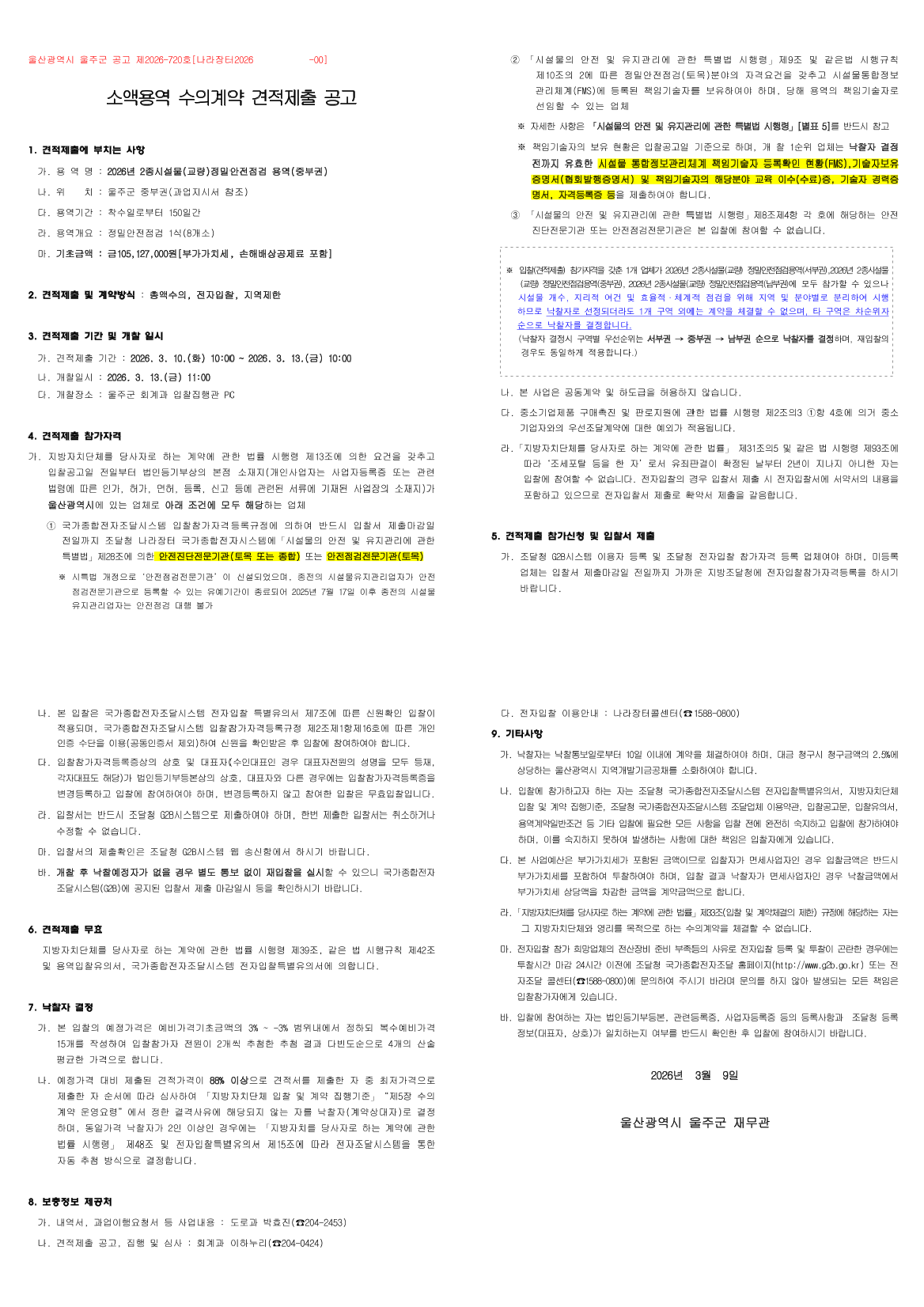 2026년 2종시설물(교량)정밀안전점검 용역(중부권) |