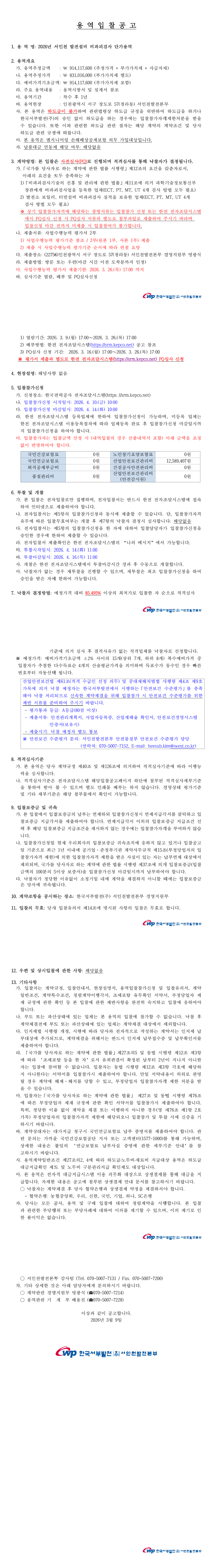 2026년 서인천 발전설비 비파괴검사 단가용역 |