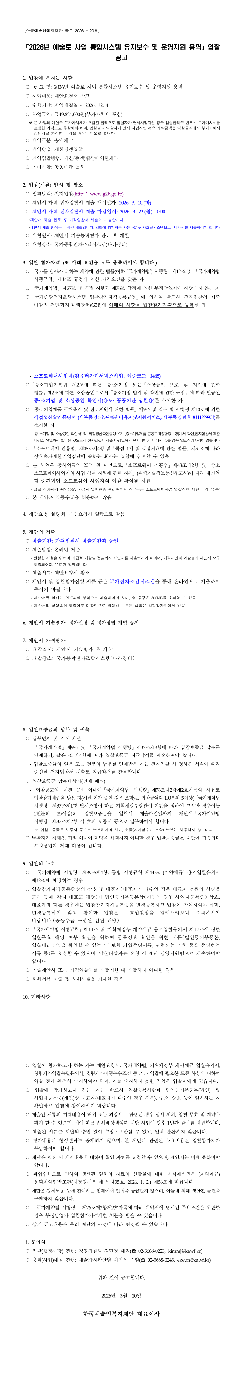 2026년 예술로 사업 통합시스템 유지보수 및 운영지원 용역 |