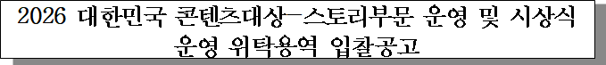 ㅇ 입찰건명 : 2026 대한민국 콘텐츠대상-스토리부문 운영 및 시상식 운영