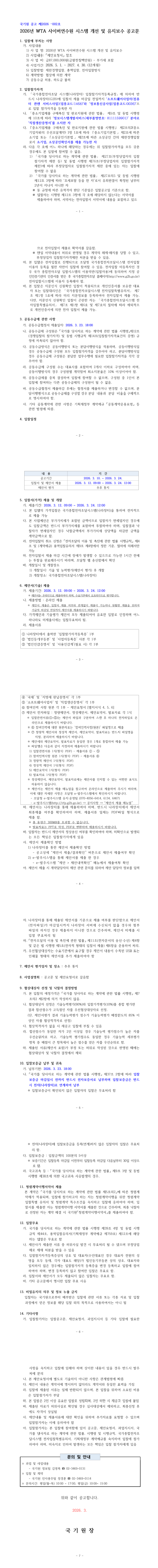 2026년 WTA 사이버연수원 시스템 개선 및 유지보수 |