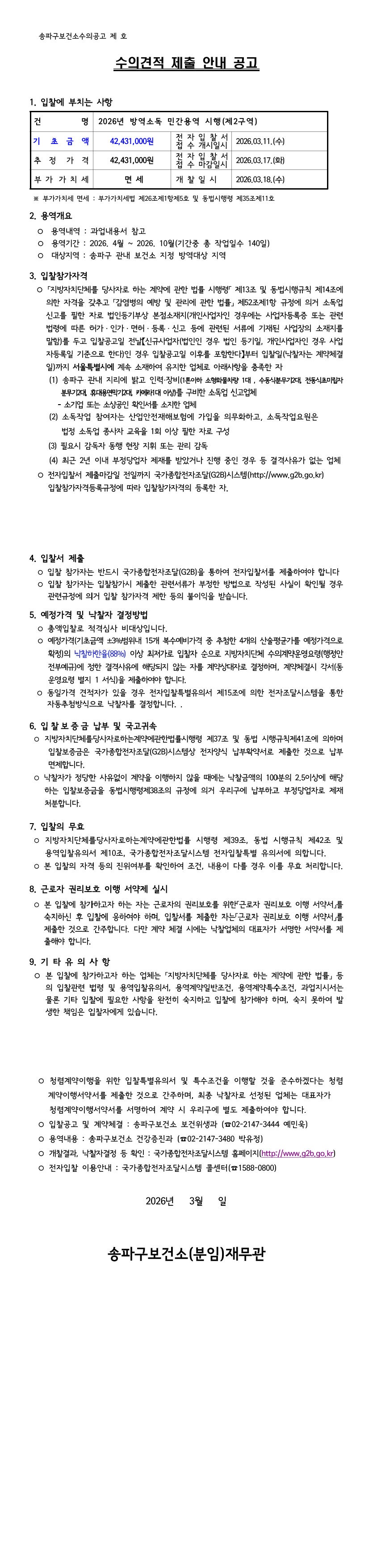 2026년 방역소독 민간용역 시행(제2구역) |