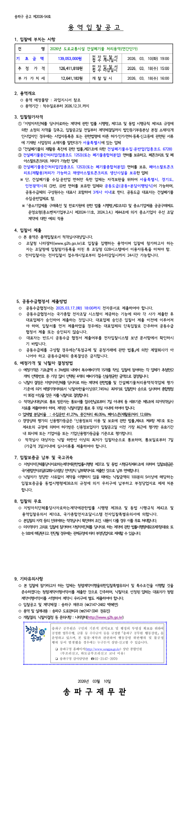 2026년 도로교통시설 건설폐기물 처리용역(연간단가) |