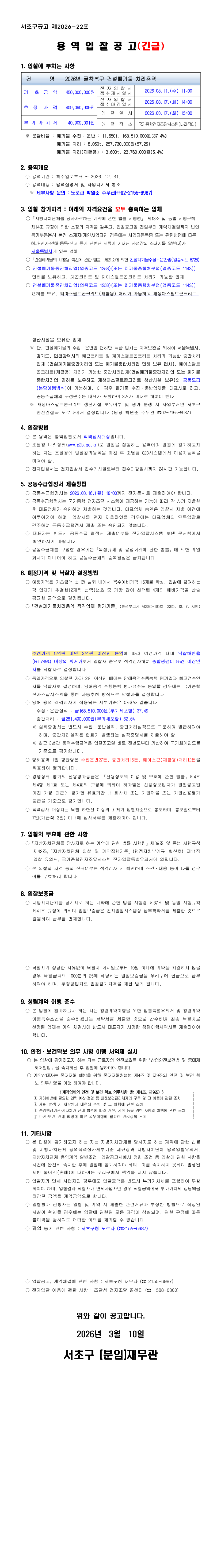 2026년 굴착복구 건설폐기물 처리용역 |