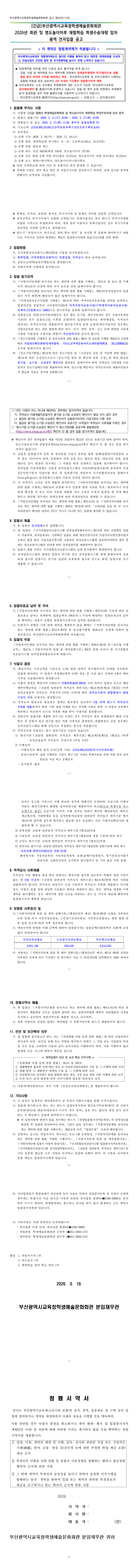 (긴급)2026년 부산광역시학생예술문화회관 및 영도놀이마루 체험학습 학생수송차량 임차 용역 |