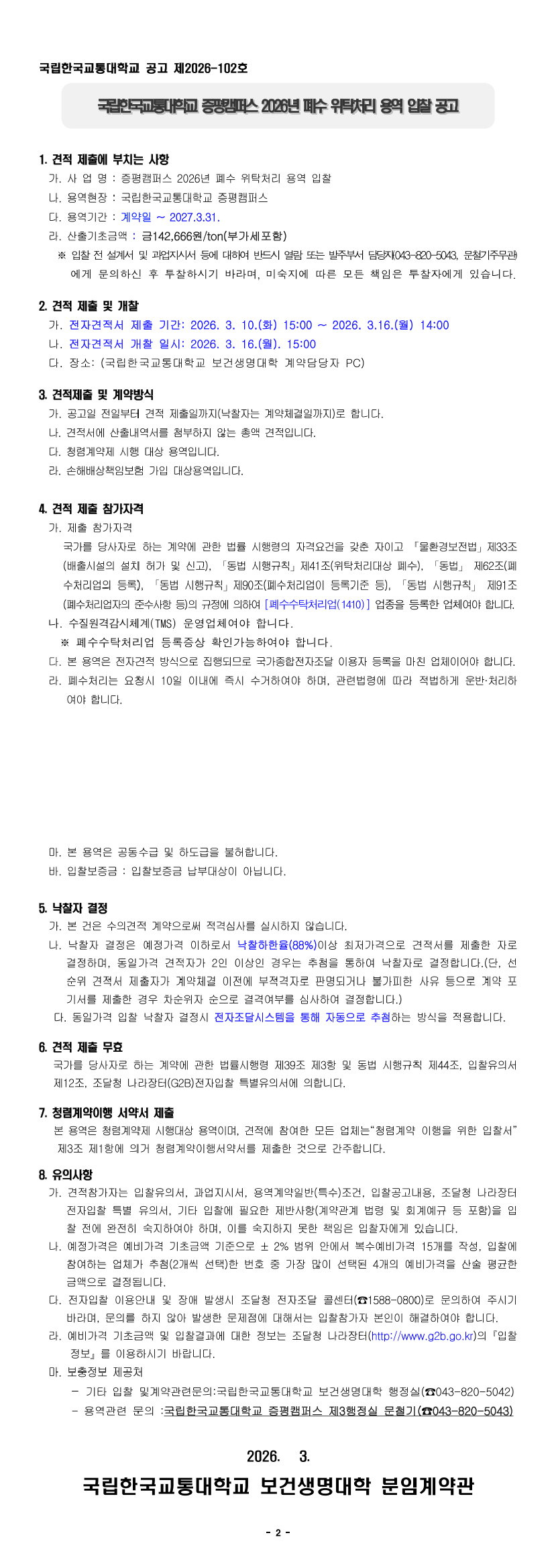 증평캠퍼스 실험실습실폐수 위탁처리 용역 |