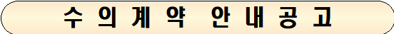지방자치단체를 당사자로 하는 계약에 관한 법률시행령 제30조 및 지방자치단체 입찰 및 계약집행기준 제5장 수의계약 운영요령에 의거 아래와 같이 수의계약 안내 공고합니다.