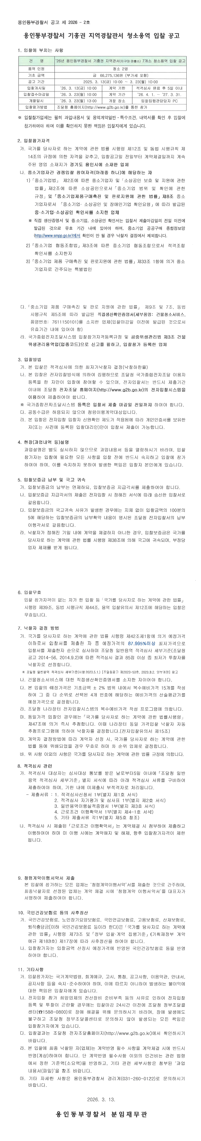 2026년 용인동부경찰서 기흥권 지역관서 청소용역 계약 |