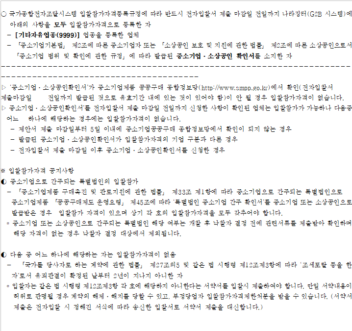 평가관련 사항은 반드시 수요기관에 문의하시기 바랍니다.
