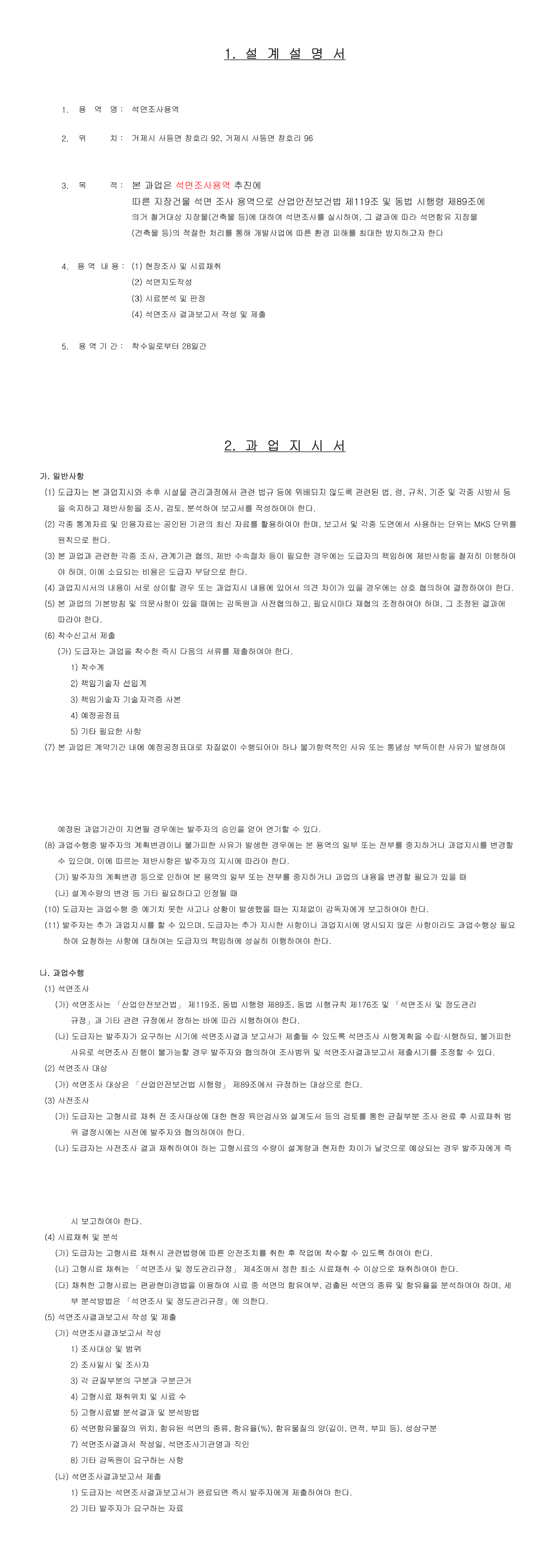 2022년 거제시 사등권역 어촌뉴딜사업 건축공사 석면조사용역 |