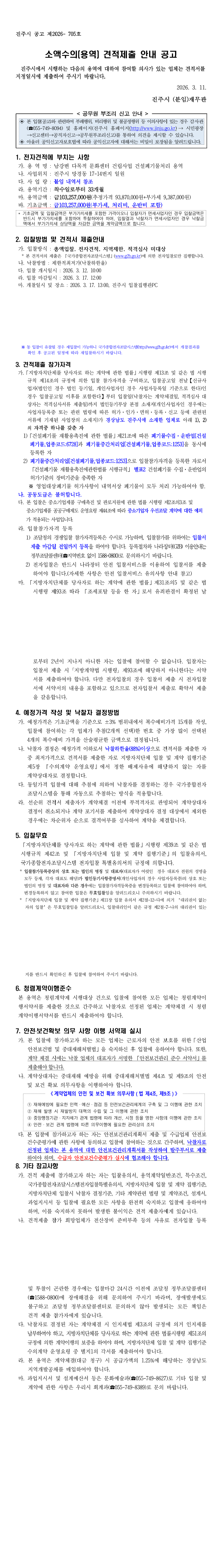 남강변 다목적 문화센터 건립사업 건설폐기물처리 용역 |