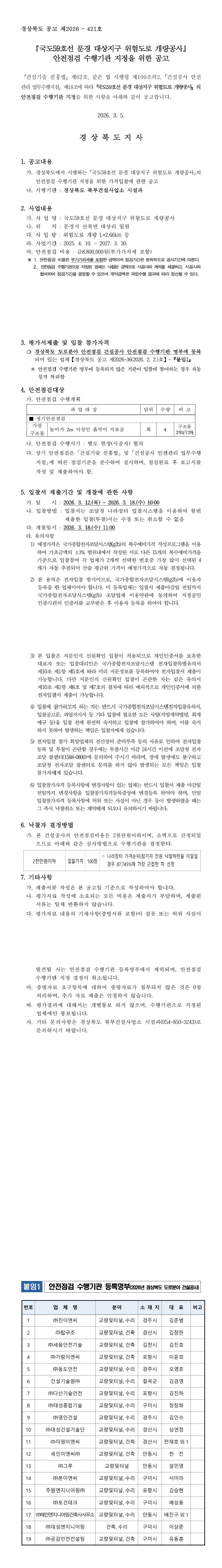 국도59호선 문경 대상지구 위험도로 개량공사 안전점검 수행기관을 위한 공고 |