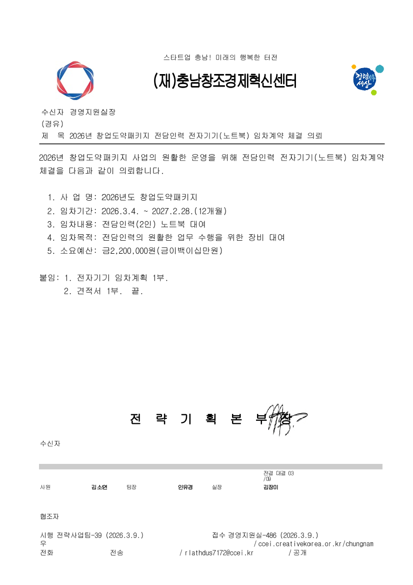 2026 창업도약패키지 전담인력 전자기기(노트북) 임차 계약 |