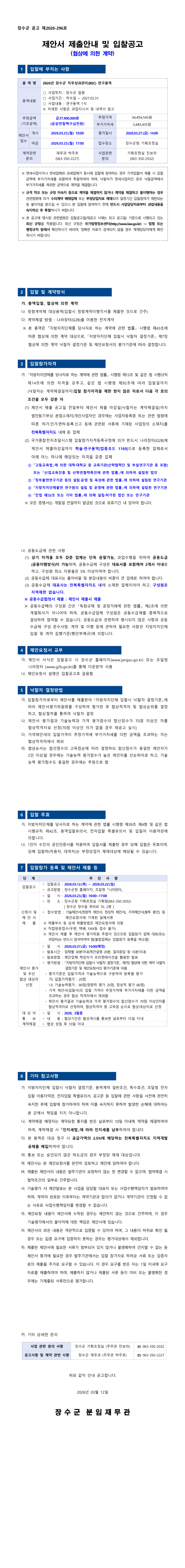 2026년 장수군 직무성과관리(BSC) 연구용역(협상에의한계약) |