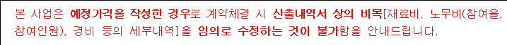 ※ 본 사업예산은 부가가치세가 포함된 금액이므로 입찰자가 면세사업자인 경우 입찰금액은